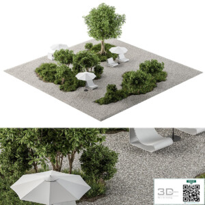 Urban Environment – Urban Furniture – Green Benches With tree 41